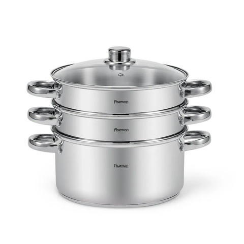 FISSMAN Marmite à vapeur SAADIYAT 24x12 cm / 5.2 LTR avec 2 inserts pour vapeur 24x8 cm et couvercle en verre