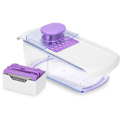 FISSMAN調整可能スライサー容器付き28x13x12 cmと6ブレード (ABS + ステンレススチール)